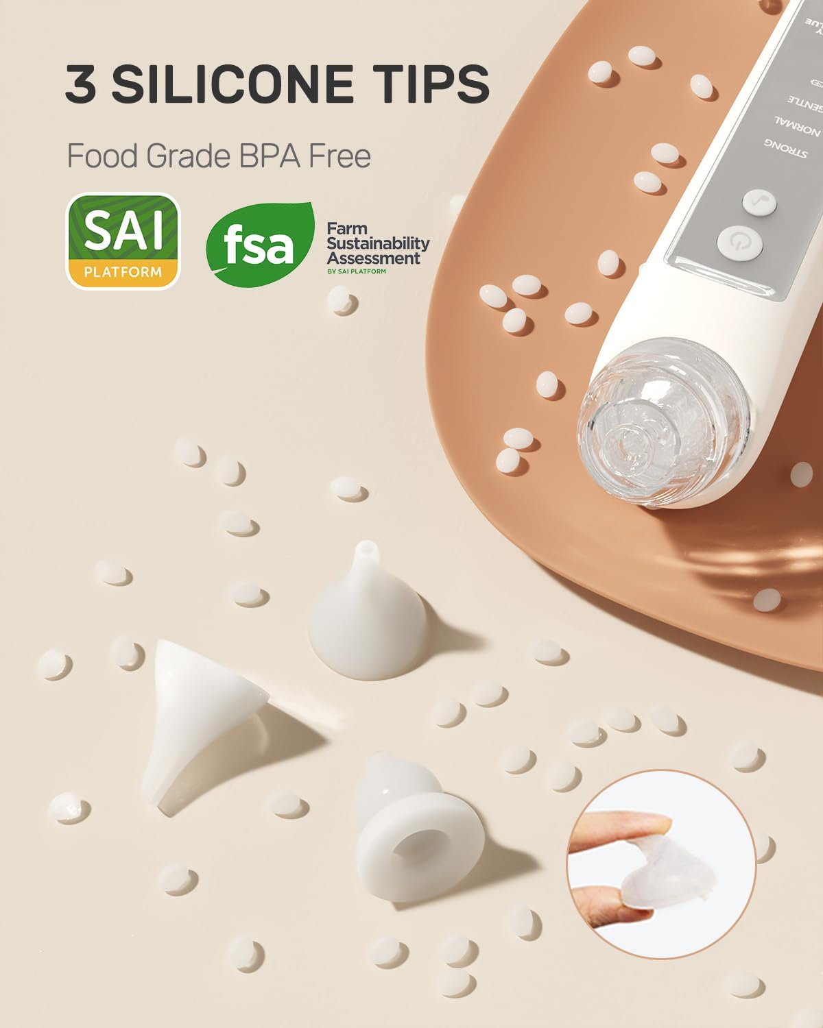 The aspirator features 3 soft, medical-grade silicone tips to fit newborns, infants, and toddlers without causing discomfort. With adjustable suction levels, you can gently customize the strength based on your baby’s needs. The built-in soothing music function helps calm your little one during use, making the process stress-free for both baby and parents.